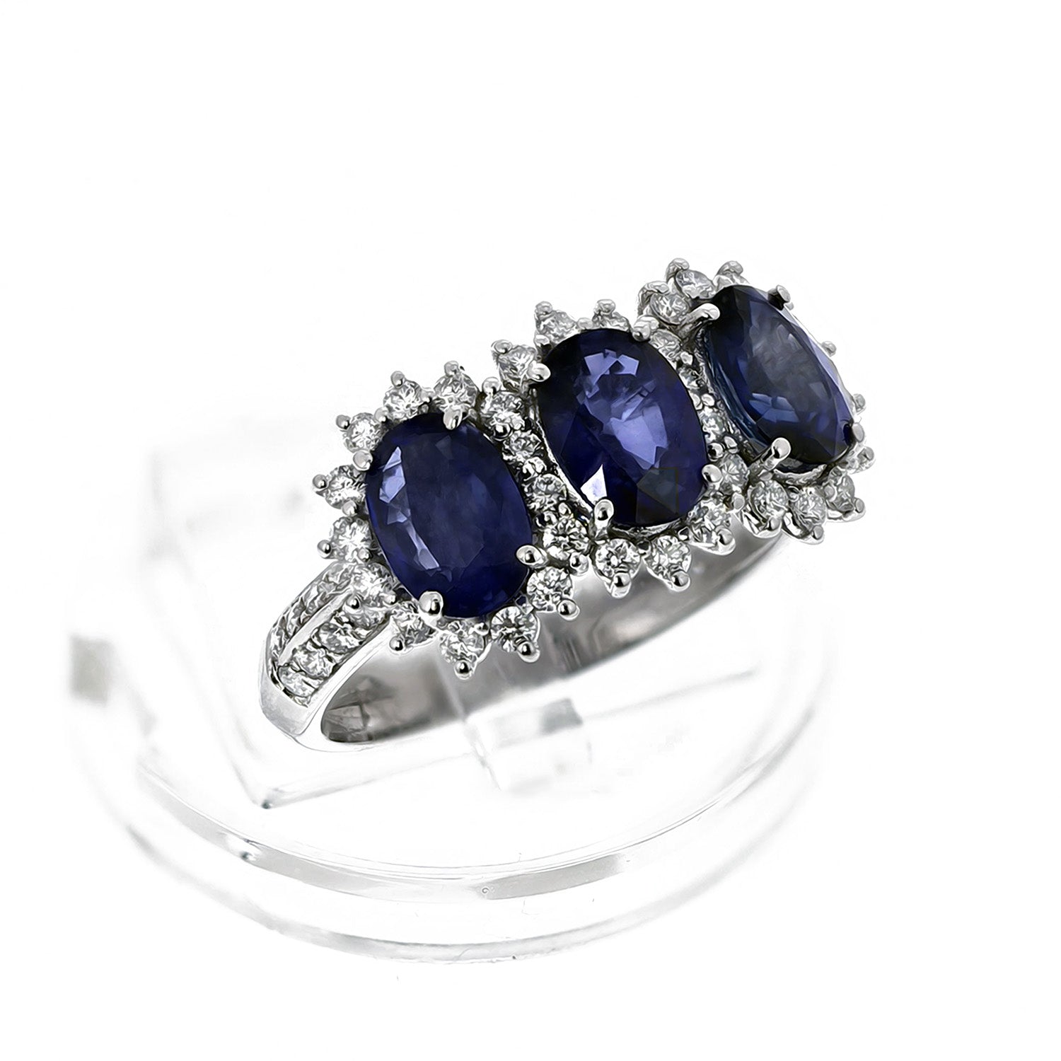 Lucrat manual în Italia din aur alb 18K, inelul este împodobit cu un safir natural oval de 2.61 ct, pus în valoare de diamante naturale de 0.66 ct, clasificate F color și VVS1 clarity. Tăieturile de precizie și proporțiile armonioase oferă o strălucire inconfundabilă.